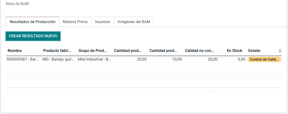 - Cantidad producida: la cantidad que se ha fabricado del producto en este detalle.
