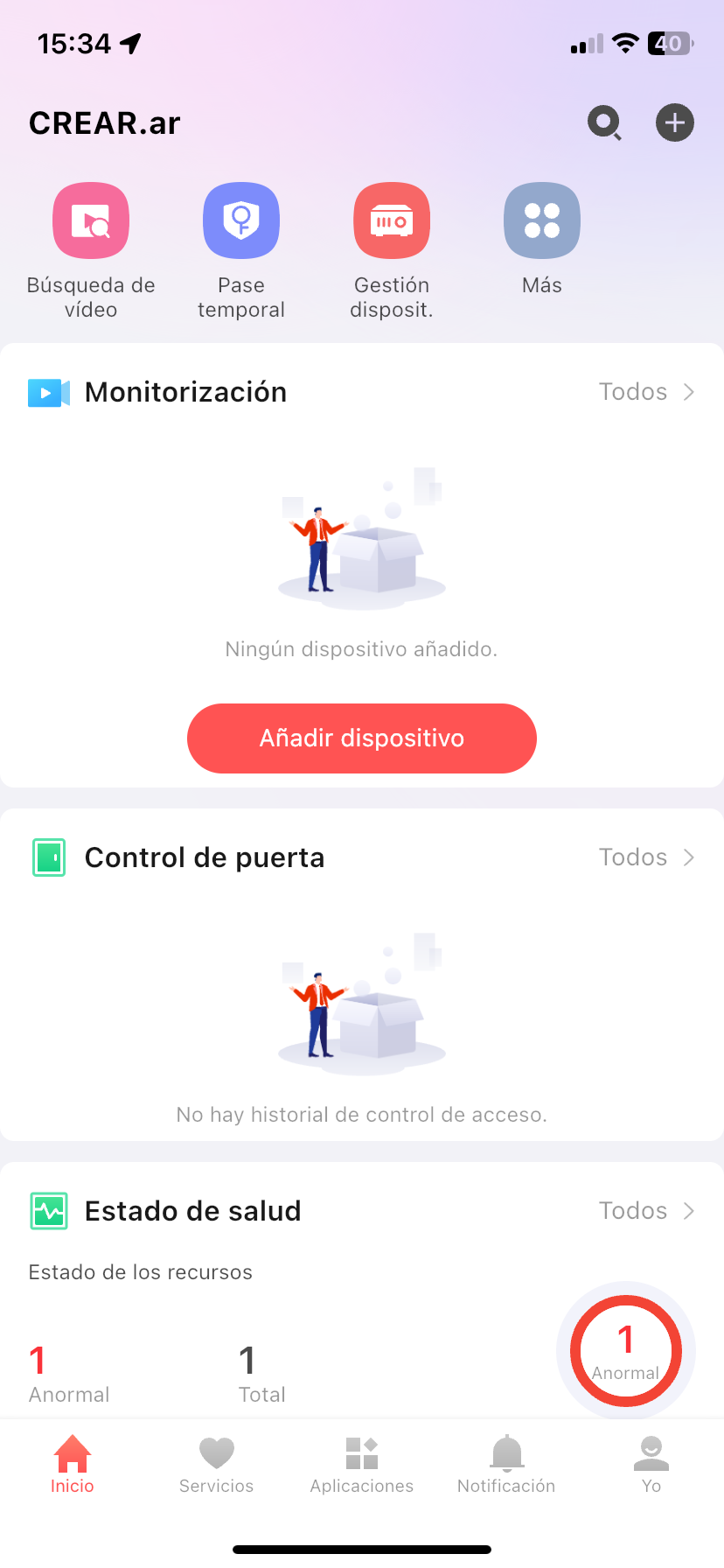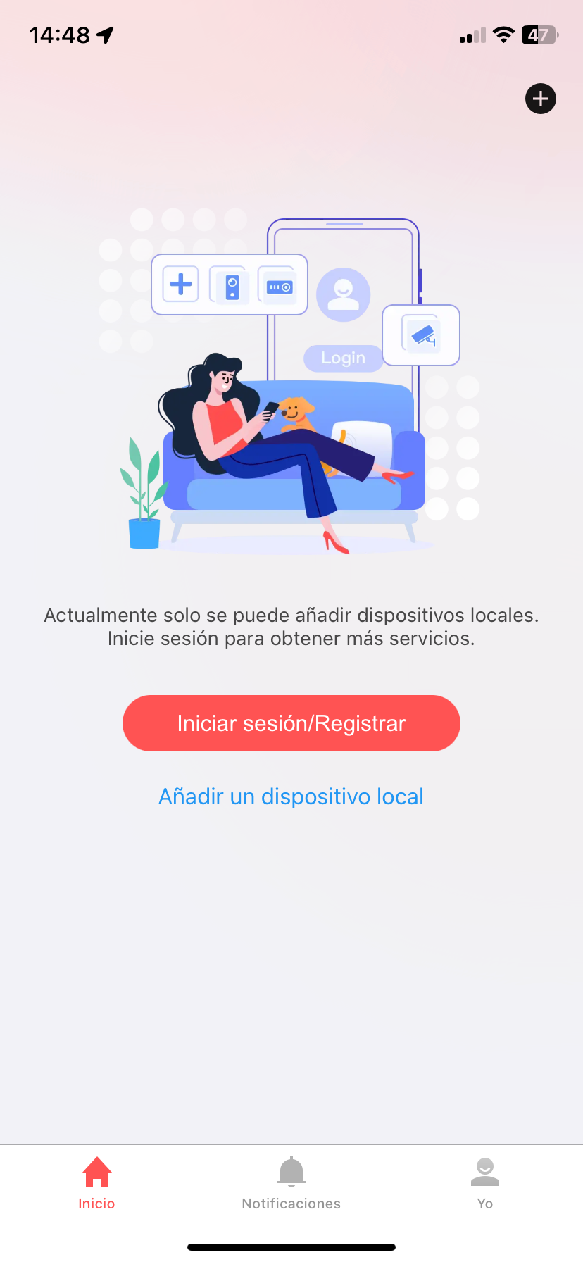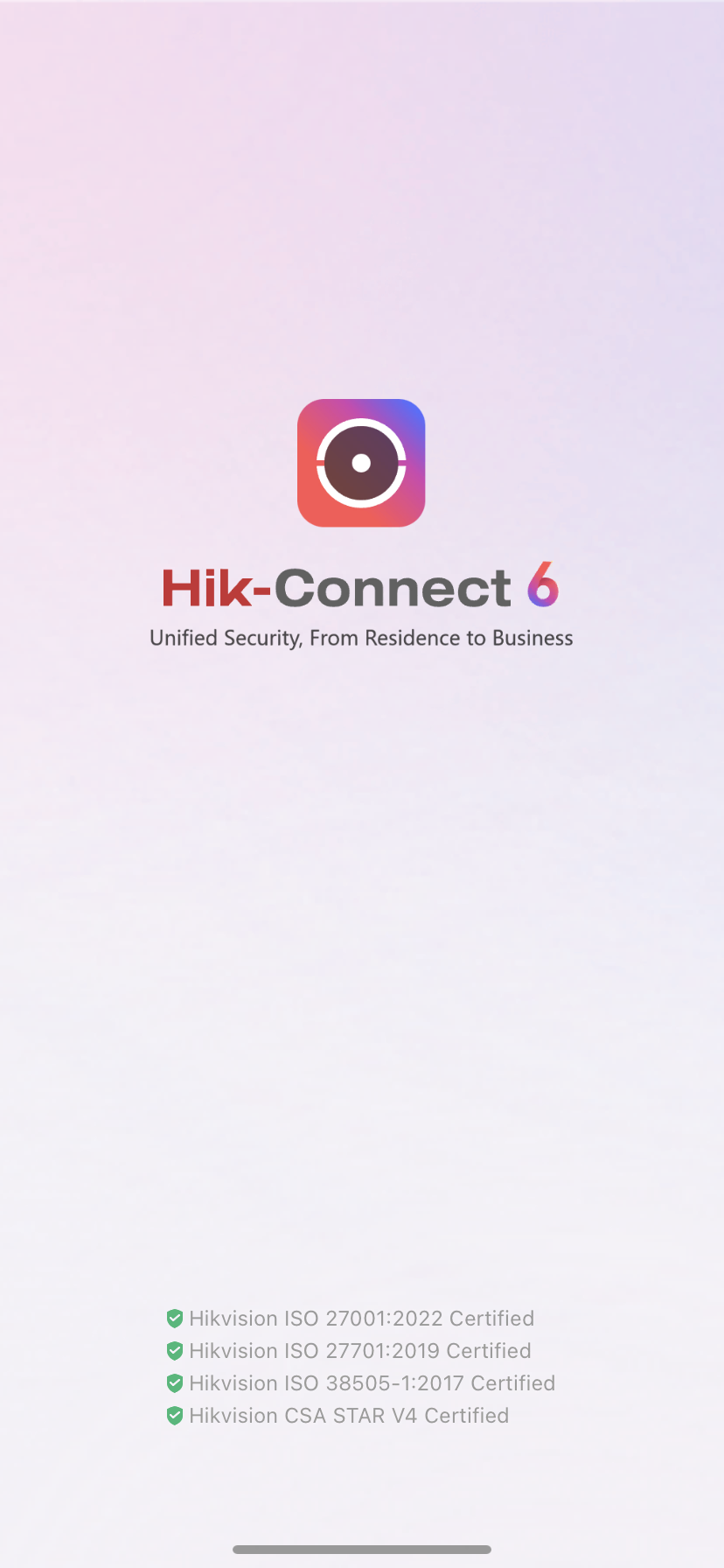 Se ingresa a la aplicación Hik-Connect seleccionando el icono en su dispositivo, esta es su pantalla de inicio.