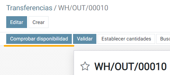 Si se quiere actualizar la cantidad reservada para la transferencia porque cambió la cantidad en stock de un producto, se puede hacer click en el botón Comprobar disponibilidad.