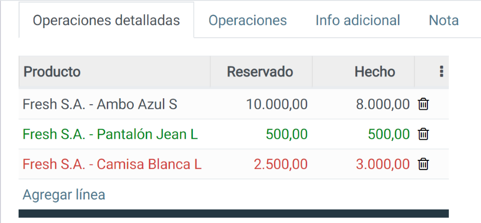 - Rojo: el monto hecho supera la cantidad reservada para la operación.