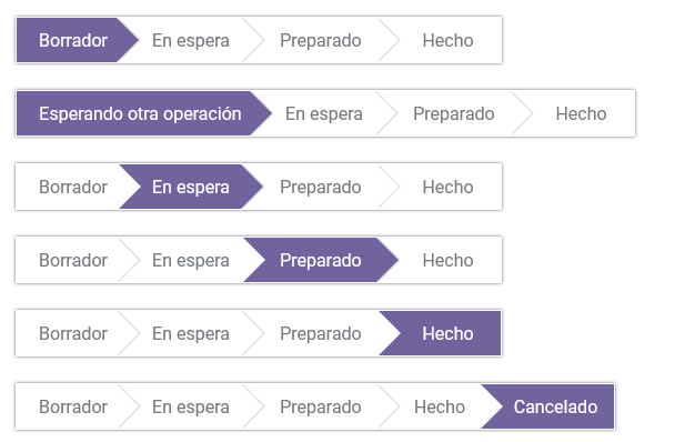 - Al Cancelar una transferencia, esta pasará al Estado Cancelado. Lo que significa que se cancelan los movimientos de inventario asociados al registro actual y bloquea el registro.